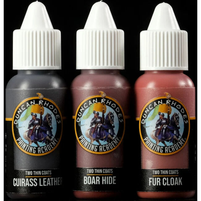 De Two Thin Coats‑verf van Duncan Rhodes geproduceerd door Trans Atlantis Games is een hoogwaardige acrylverf van 15 ml in handige druppelflesjes met mengballetje. Elke kleur is zorgvuldig ontwikkeld samen met top chemici en garandeert uitstekende pigmentatie en consistentie, zodat je met slechts twee dunne lagen een egale, matte tot semi-matte dekking kunt bereiken. De verf geldt als vriendelijk in gebruik voor zowel beginnende als gevorderde schilders: vloeit soepel van je penseel, droogt relatief snel en leent zich goed voor technieken zoals glazuren, lagen opbouwen en blenden. De verpakking voorkomt uitdrogen en verspilling: geen potje dat indikt, maar direct klaar voor gebruik. Veel gebruikers vergelijken de kleuren met Citadel‑equivalenten en prijzen de metallics om hun fijne pigmentatie en dekking. Kortom: verf die precies doet wat de naam belooft; twee dunne lagen, maximaal resultaat.